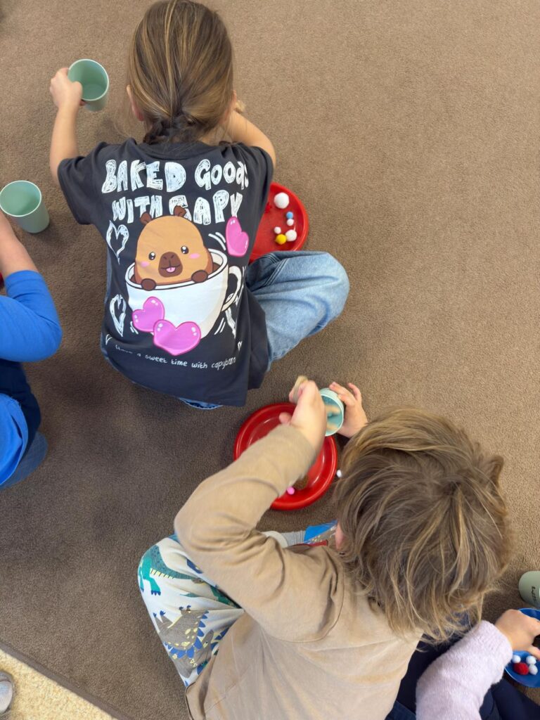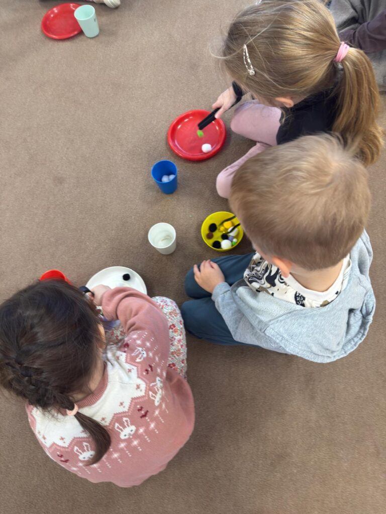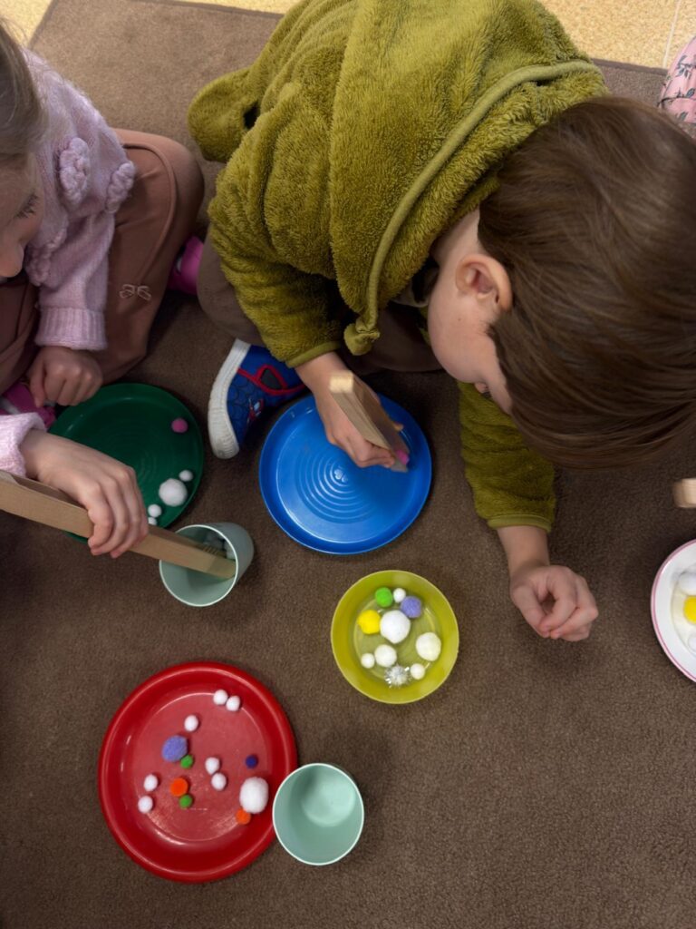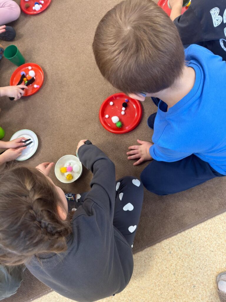 – ćwiczyły motorykę małą podczas zabaw w sali