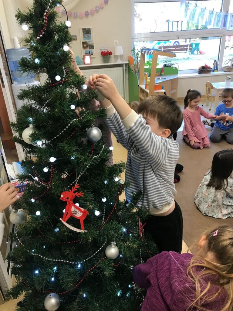 Grudzień to przede wszystkim oczekiwanie na święta i przyjście Gwiazdora. W tym czasie wykonywaliśmy prace plastyczne, dekorowaliśmy naszą salę, wzięliśmy udział w przedszkolnych Jasełkach oraz zaprosiliśmy rodziców na spotkanie świąteczne.