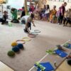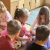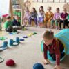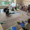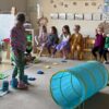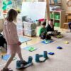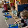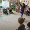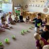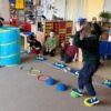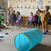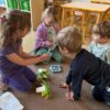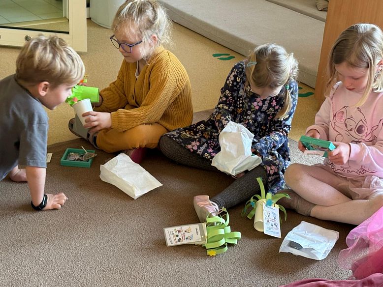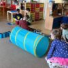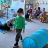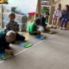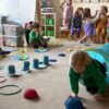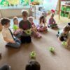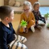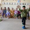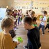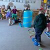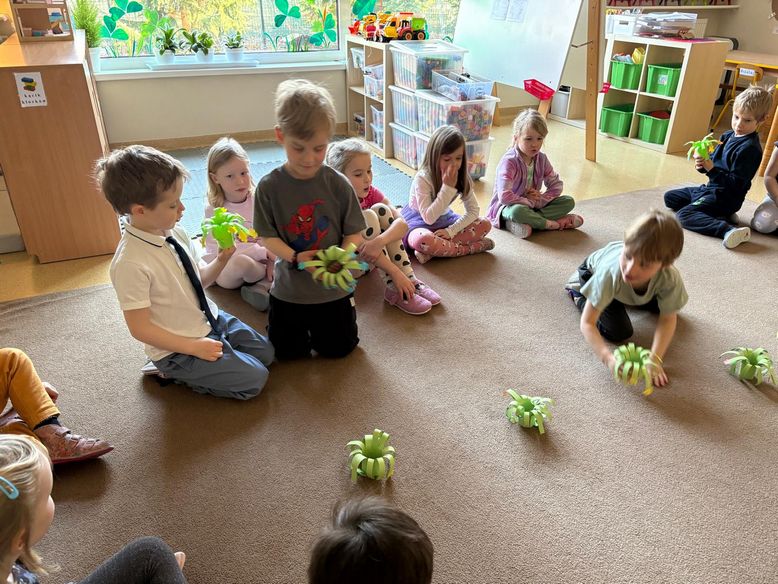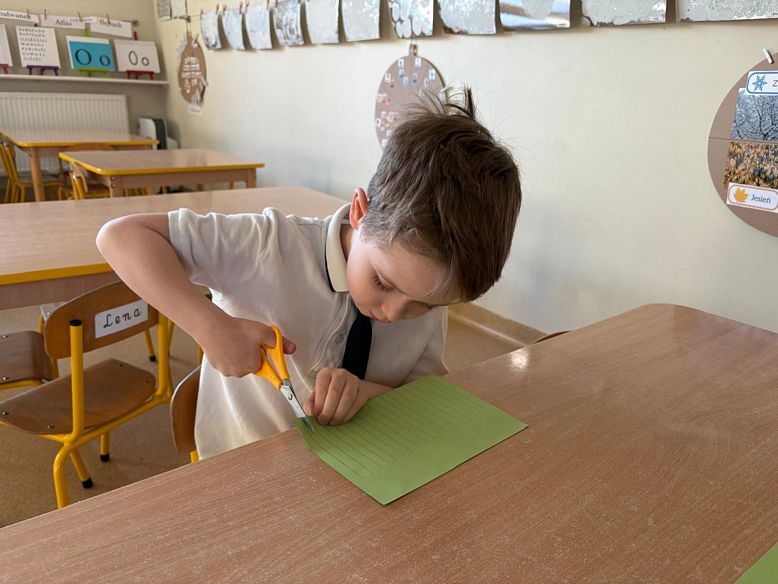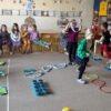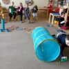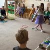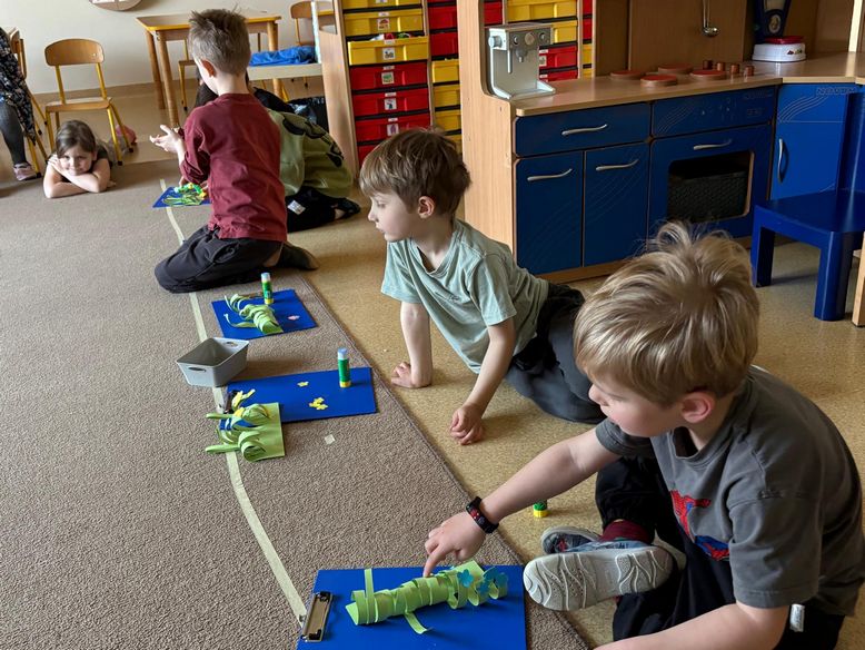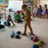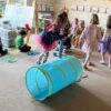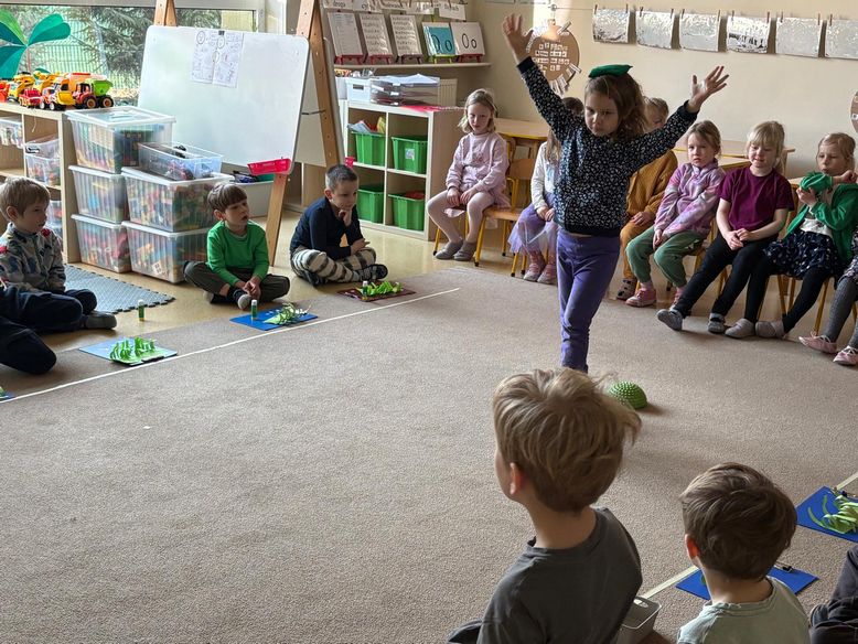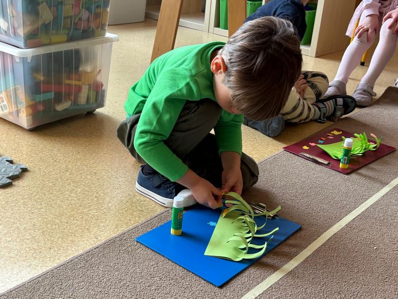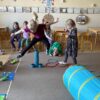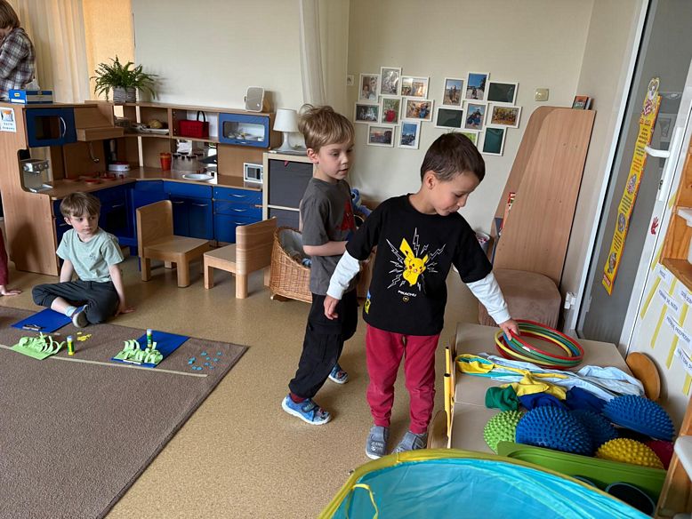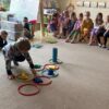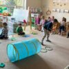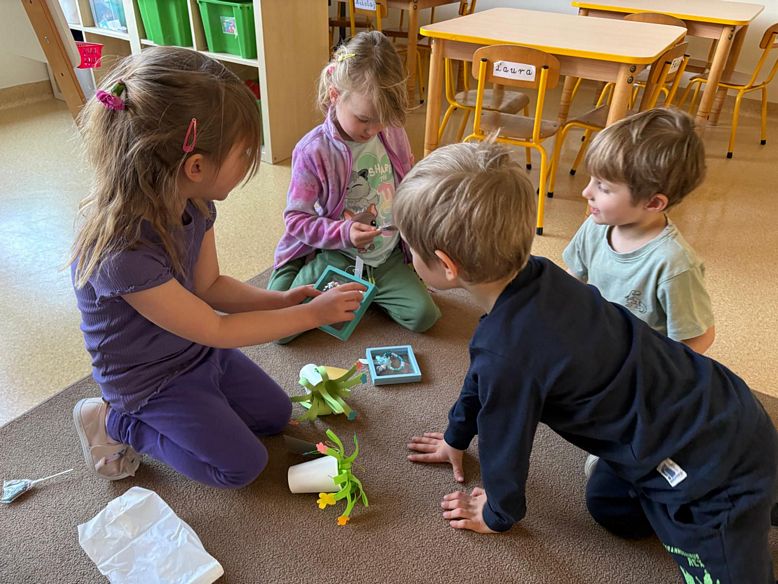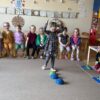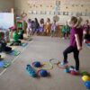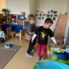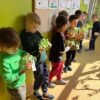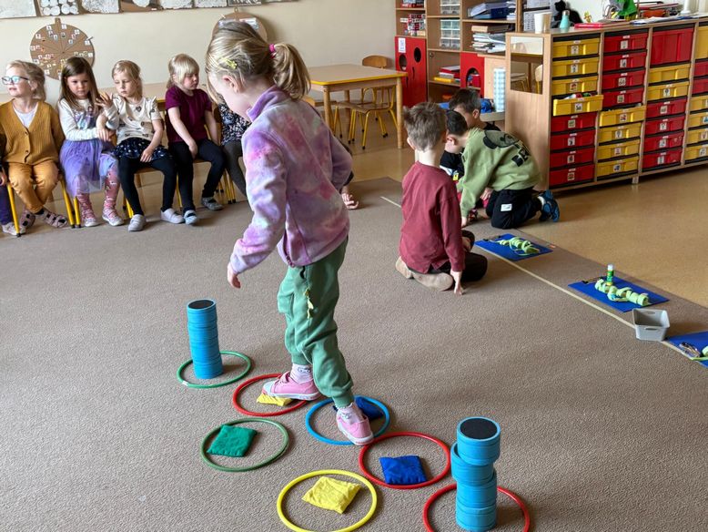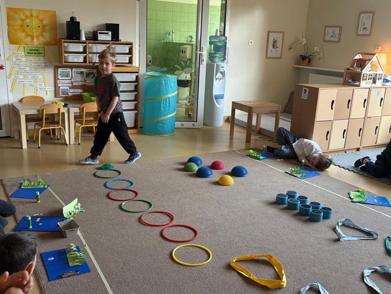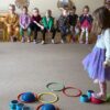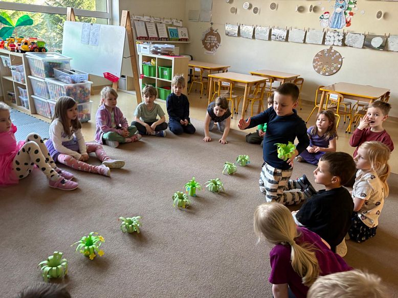 Chłopcy od rana przygotowywali materiały potrzebne do „wspólnego świętowania” – wycinali pomoce, wybierali sprzęt gimnastyczny, naklejali taśmę na dywanie, a potem pomagali w ustawieniu krzesełek dla dziewczynek. Chłopcy kolejno tworzyli dowolny tor przeszkód, a zadaniem dziewczynek było przejście po tym torze według instrukcji. Chłopcy byli równocześnie jurorami i za każde wykonane zadanie przyklejali dziewczynkom punkt w formie kwiatka. Na koniec powstał bukiet, który chłopcy wręczyli dziewczynkom…i oczywiście upominki. Było wesoło, a wszyscy weszli z zaangażowaniem w swoje role:)