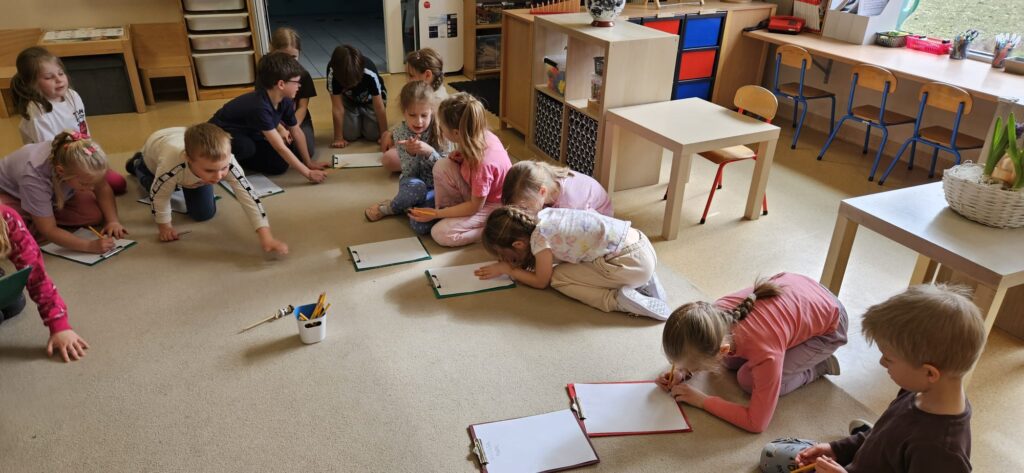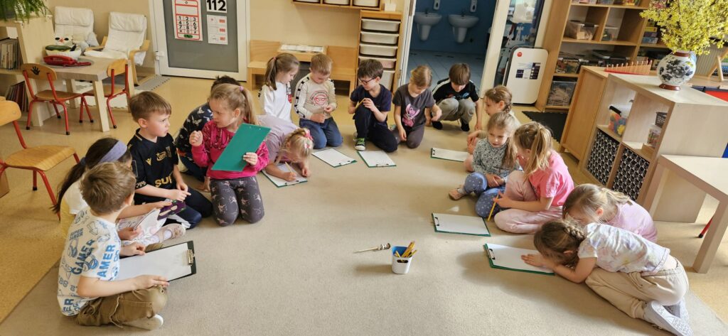 Dzieci rysowały lub zapisywały swoje obserwacje współpracując w parach.