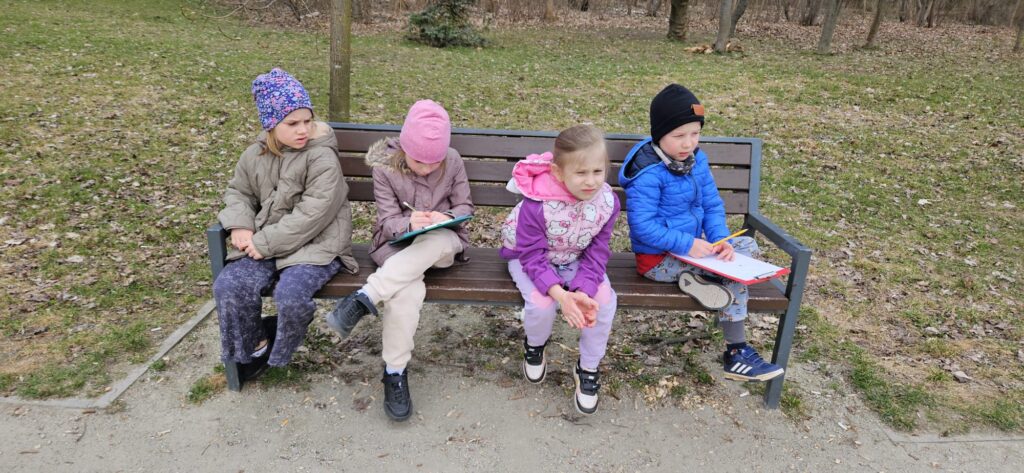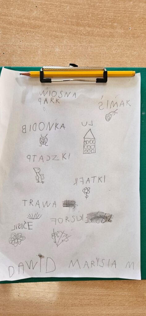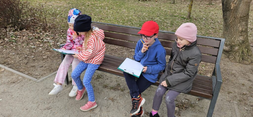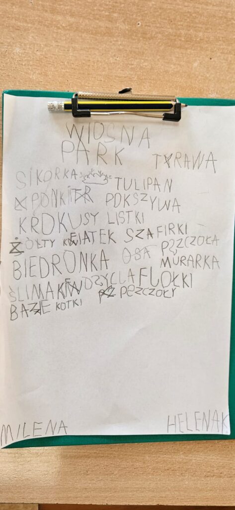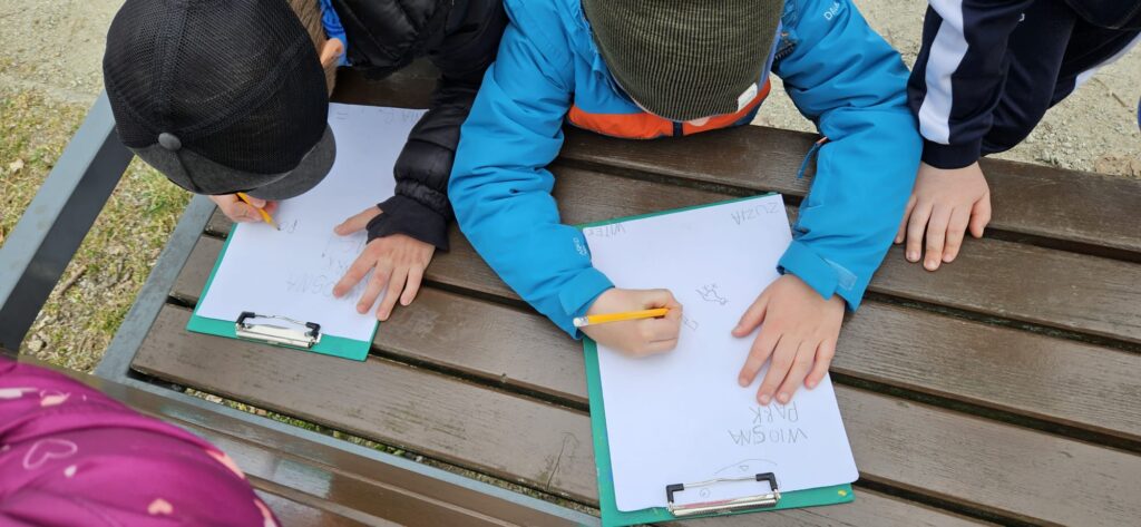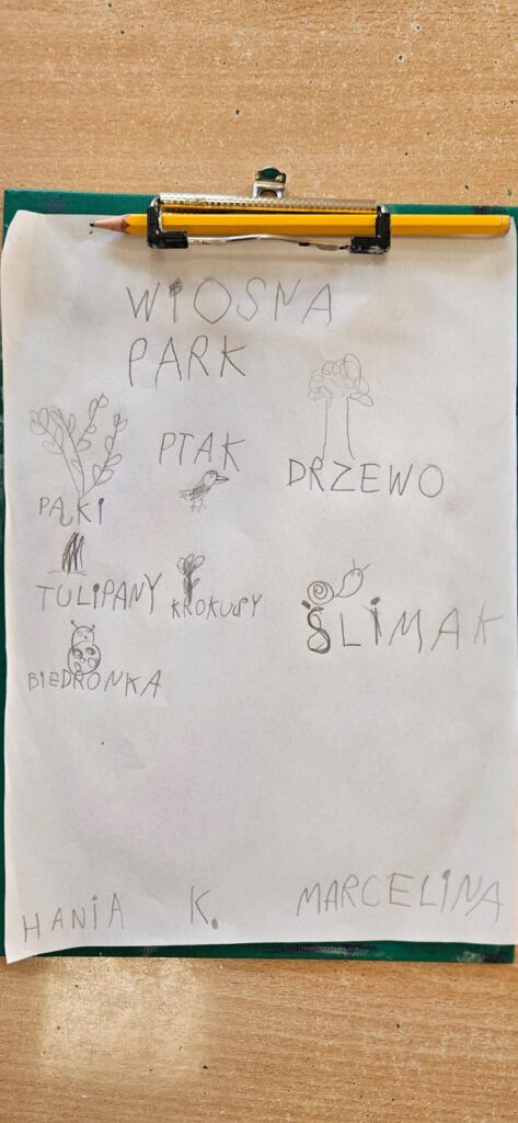 Najpierw odczytaliśmy napisy, potem przygotowaliśmy karty obserwacji i wyruszyliśmy do parku.