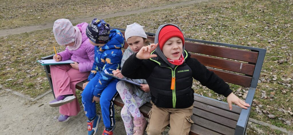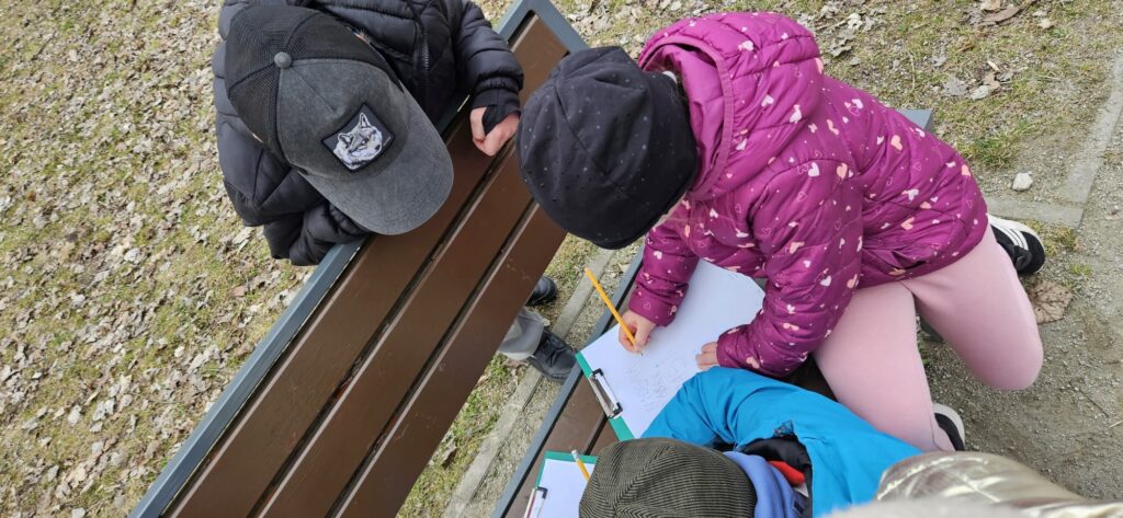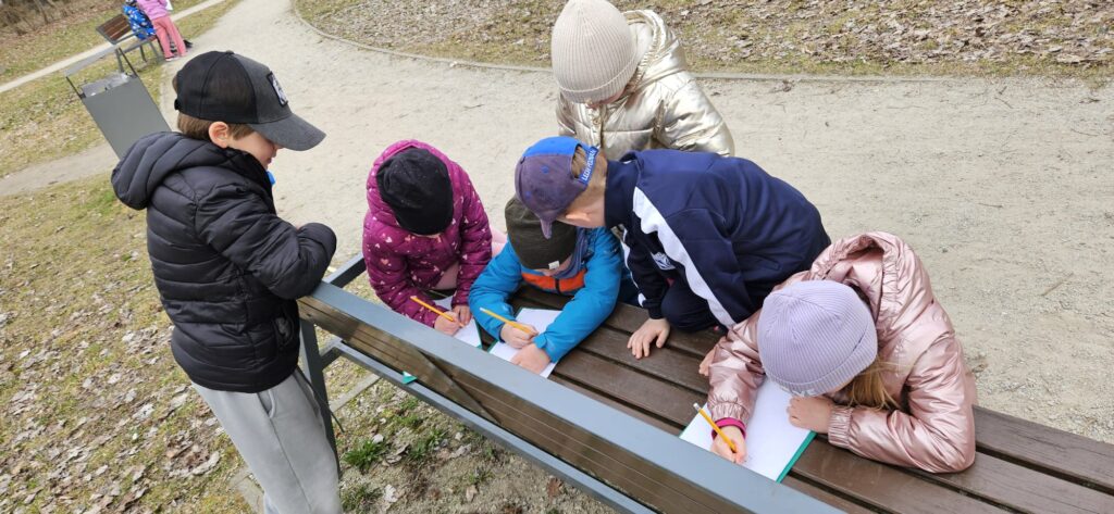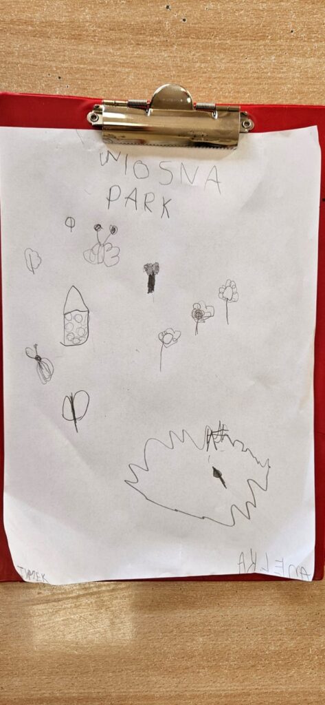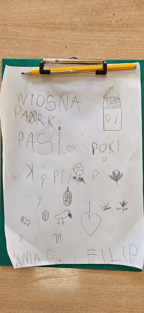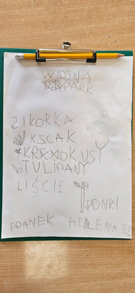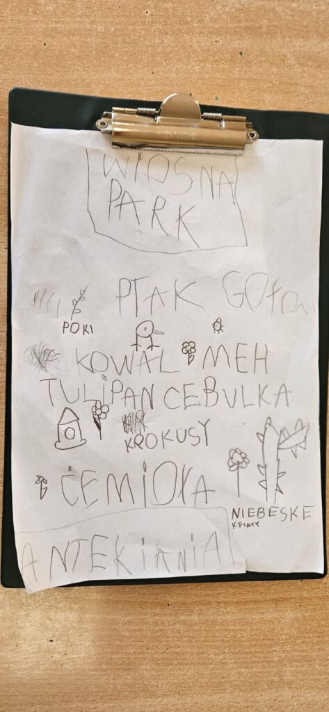Najpierw odczytaliśmy napisy, potem przygotowaliśmy karty obserwacji i wyruszyliśmy do parku.