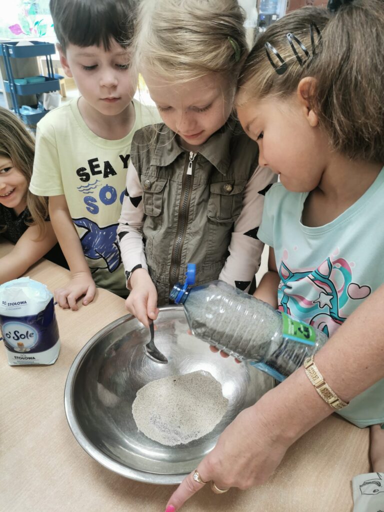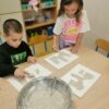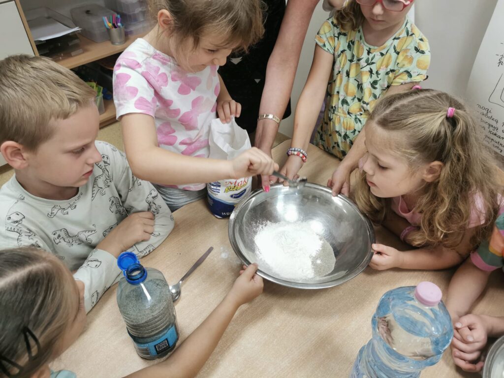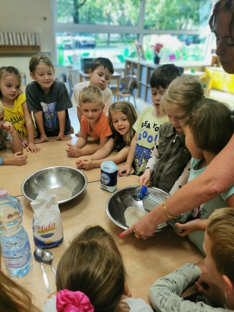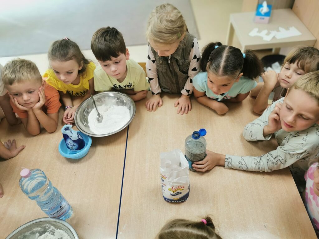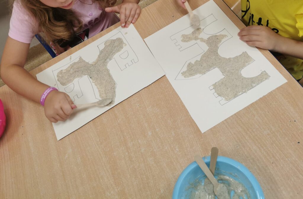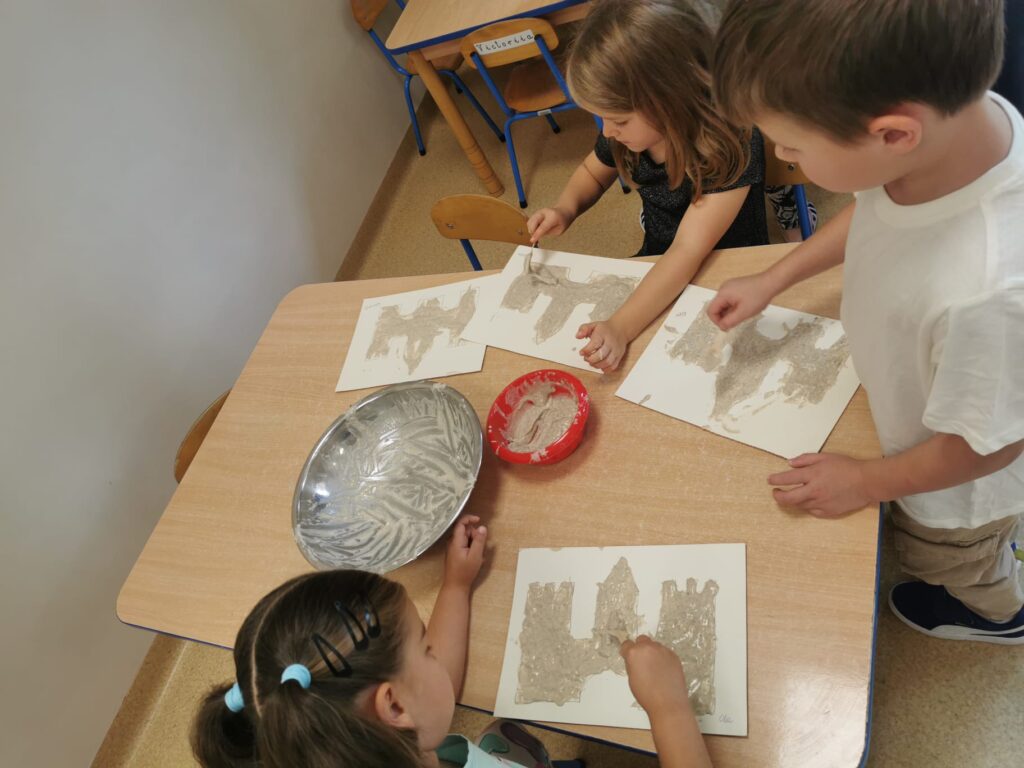 Chcąc nieco przedłużyć letnią atmosferę, postanowiliśmy zrobić zamki z masy piaskowej. Połączyliśmy mąkę, wodę, sól i piasek w odpowiednich proporcjach, przeliczając liczbę łyżek każdego składnika i z tak przygotowanej masy tworzyliśmy zamki, które wypiekaliśmy w kuchence mikrofalowej. Dzięki temu nasze zamki nabrały objętości i wyglądały jak prawdziwe!
