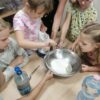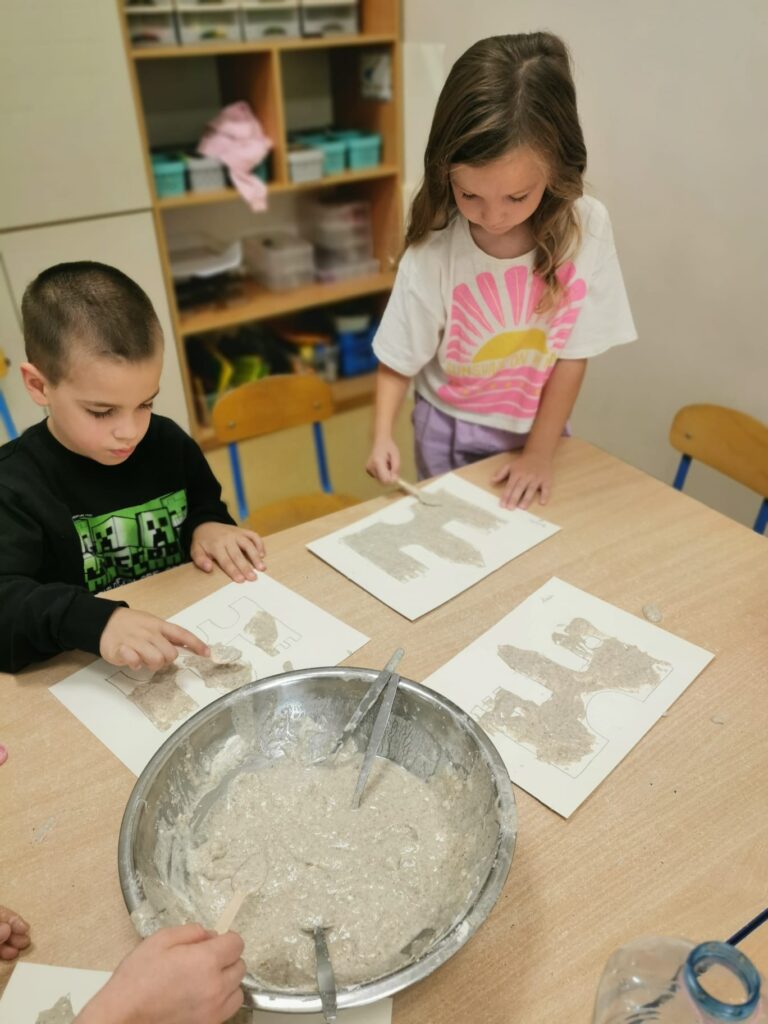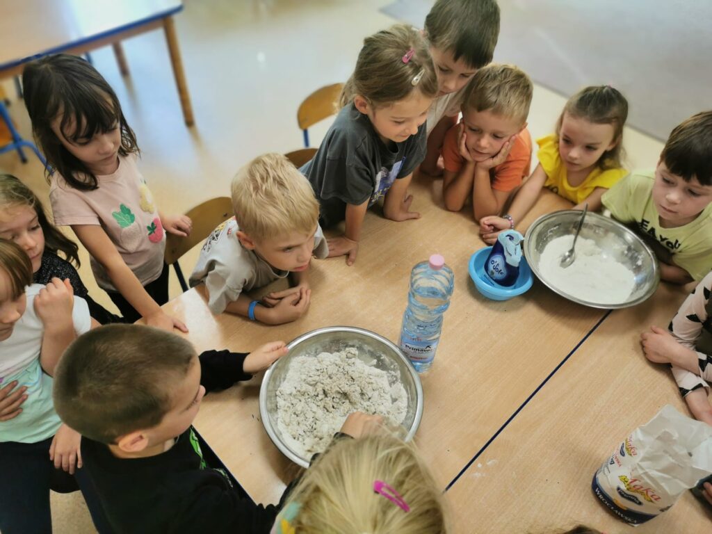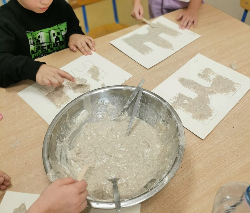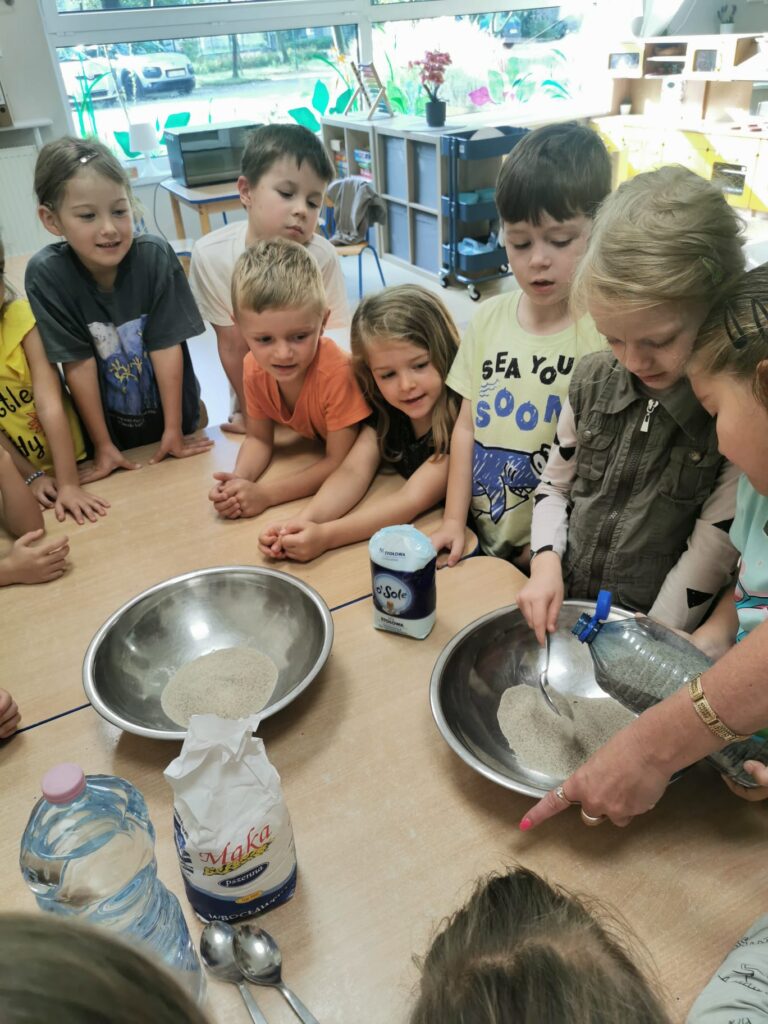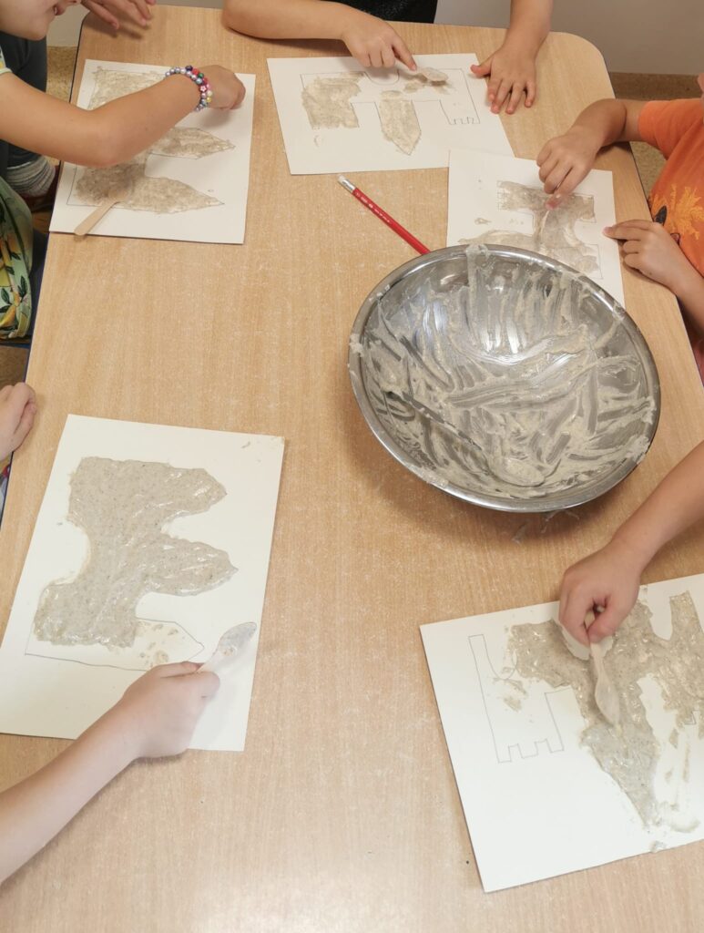 Chcąc nieco przedłużyć letnią atmosferę, postanowiliśmy zrobić zamki z masy piaskowej. Połączyliśmy mąkę, wodę, sól i piasek w odpowiednich proporcjach, przeliczając liczbę łyżek każdego składnika i z tak przygotowanej masy tworzyliśmy zamki, które wypiekaliśmy w kuchence mikrofalowej. Dzięki temu nasze zamki nabrały objętości i wyglądały jak prawdziwe!