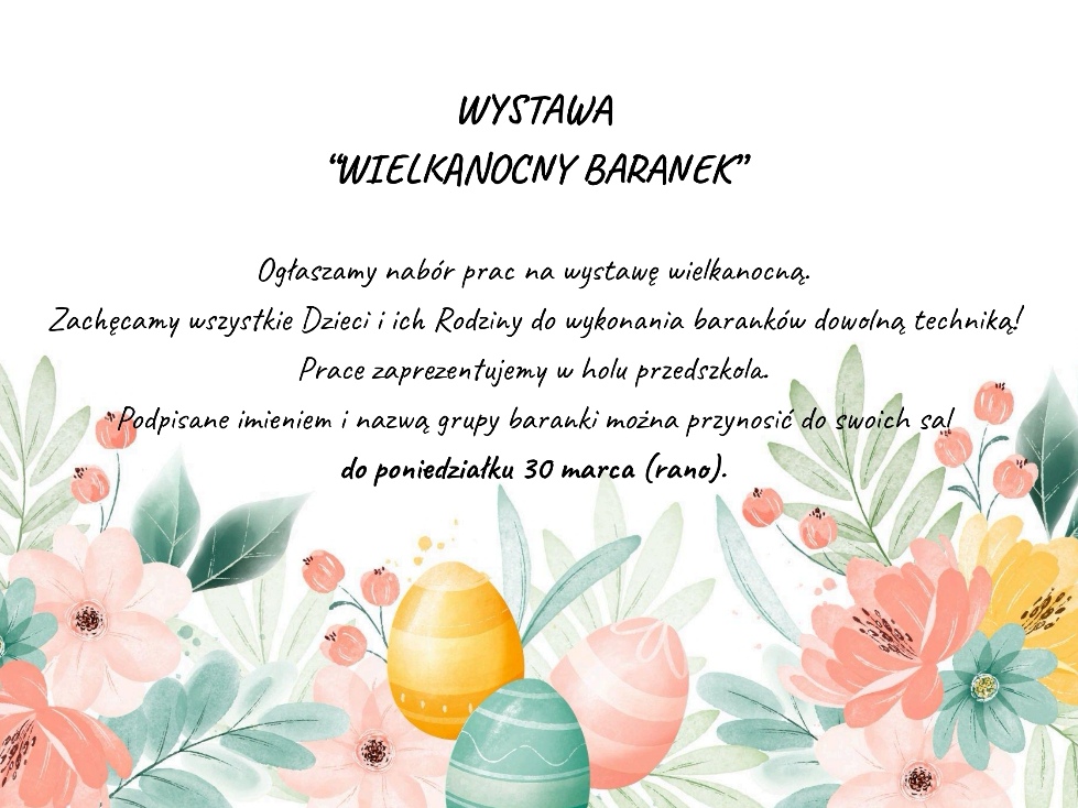- 1 kwietnia 2026r. – ŚNIADANIE WIELKANOCNE i POSZUKIWANIE ZAJĄCZKA